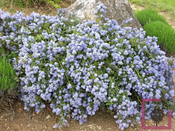 | Il ceanothus thyrsiflorus repens أ¨ un arbusto sempreverde, alto 50 cm e largo 80 cm, crescita rapida e portamento strisciante; foglie verde bottiglia; fiori in pannocchie, azzurri, in giugno-luglio. | |