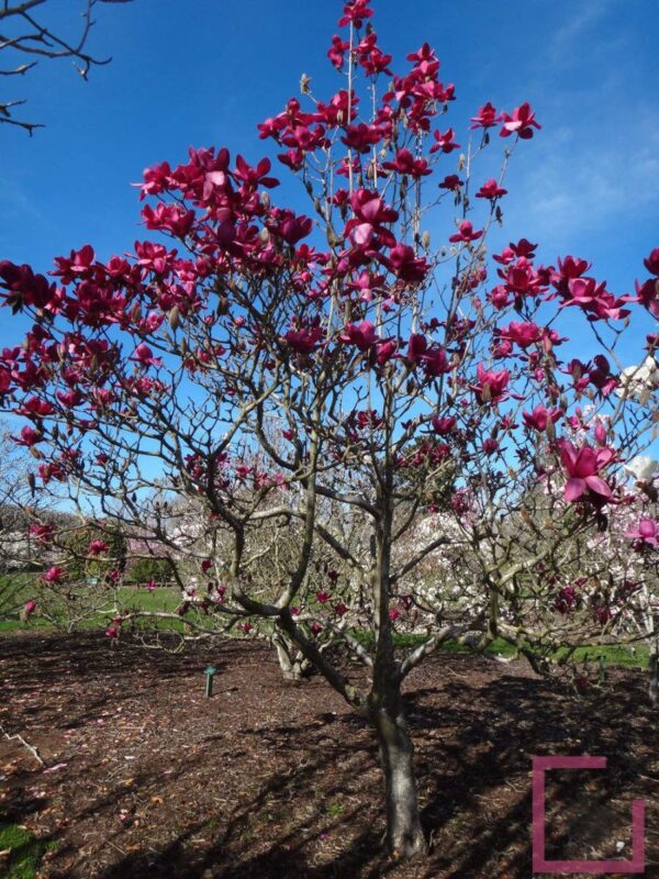 Magnolia â€کvulcan’ أ¨ nata nel 1990 in nuova zelanda a tikorangi nel vivaio di mark e abbie jury che hanno ibridato e selezionato una serie di nuove varietأ una piأ¹ bella dell’altra come â€کiolanthe’, â€کatlas’, â€کathene’, â€کblack tulip’, â€کmilk way’ solo per citare le piأ¹ note. in particolare m. â€کvulcan’ أ¨ nata da un incrocio definito dagli esperti “coraggioso†tra la m. campbellii â€کlanarth’ e m. liliflora. con la varietأ â€کvulcan’ dopo 180 anni di ibridazione delle magnolie أ¨ stata raggiunto un traguardo importante, la perdita della componente rosa viola che ha sempre caratterizzato tutte le varietأ dalla magnolia soulangeana in poi. magnolia â€کvulcan’ infatti أ¨ rossa, decisamente rossa senza altre sfumature e questo la fa distinguere immediatamente dalle altre. e’ una pianta che cresce sino a 7/8 metri, quindi piأ¹ che un arbusto أ¨ un piccolo albero con fiori che si formano sin da giovane etأ e sono di una bella forma, grandi 20/30 cm con 12 sepali rotondeggianti. splendidi e vistosi sono anche i bocci, delle vere palle rosso scuro. i fiori hanno un profumo intenso e dolciastro che ricorda un po’ il melone.m. â€کvulcan’ tende a crescere piuttosto compatta, quasi fastigiata con una naturale guida centrale e quindi si presta bene per essere educata anche ad alberello. va posizionata in giardino in pieno sole e in un posto di primo piano.e’ abbastanza resistente al freddo, negli stati uniti, dove أ¨ arrivata prima che da noi, i cataloghi americani la classificano in zona 7 che prevede temperature di -14/-17آ° ma la resistenza al freddo come sappiamo أ¨ variabile e influenzata dallo stato di maturazione della pianta, in particolare le magnolie da fiore soffrono per le gelate primaverili che se arrivano nel momento della fioritura possono comprometterla.